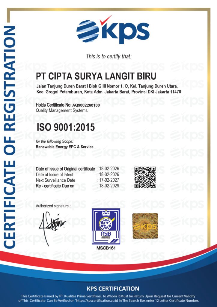 Lebih dari sekadar instalasi, CSL Power mengintegrasikan PLTS dengan standar kualitas global. CSL Power membangun kemandirian energi untuk bisnis dan hunian Anda. Transformasi Energi untuk Investasi Masa Depan yang Terukur.