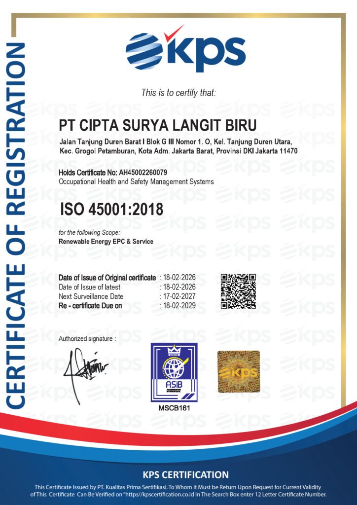 Kami percaya bahwa kualitas sistem energi surya ditentukan oleh ketelitian di setiap tahapannya. Kami mengadopsi standar operasional internasional bukan hanya sebagai formalitas, melainkan sebagai disiplin internal untuk memastikan keamanan, efisiensi, dan daya tahan sistem hingga 25 tahun ke depan.
